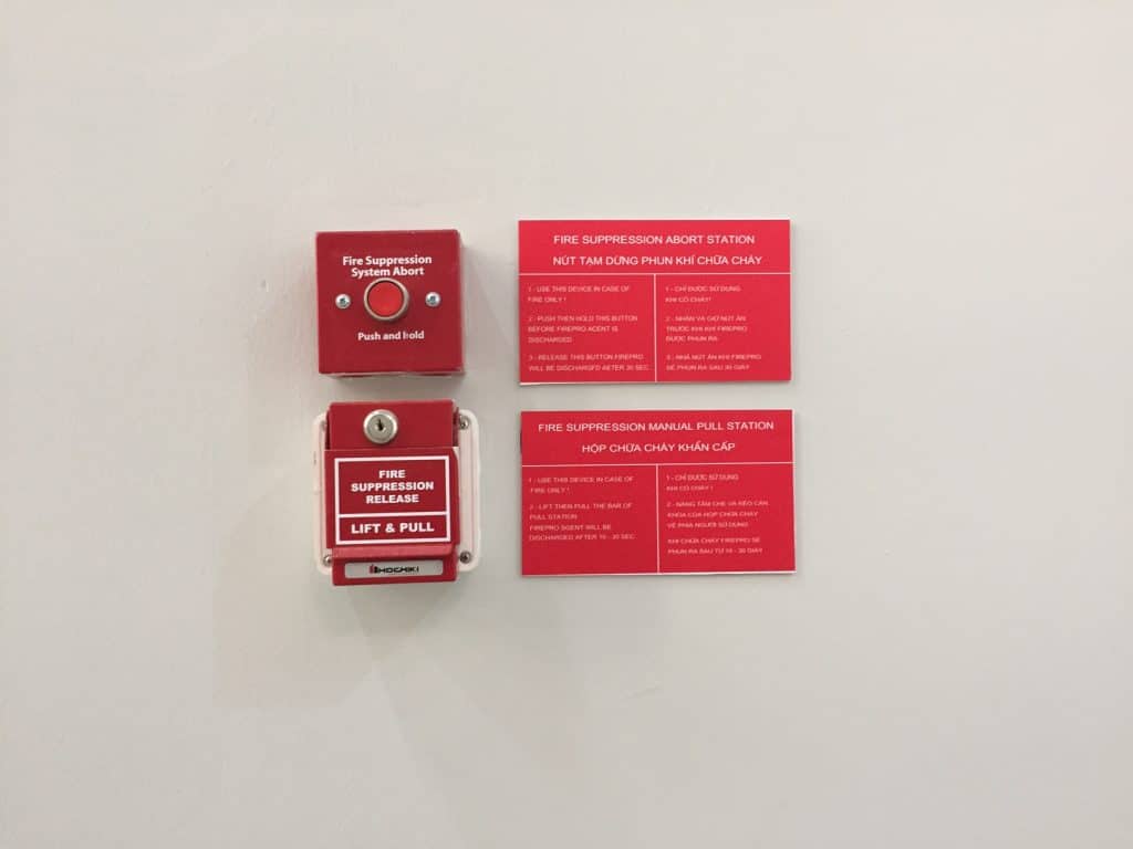 Hình 3: Nút ấn tạm dừng phun khí chữa cháy và hộp chữa cháy khẩn cấp